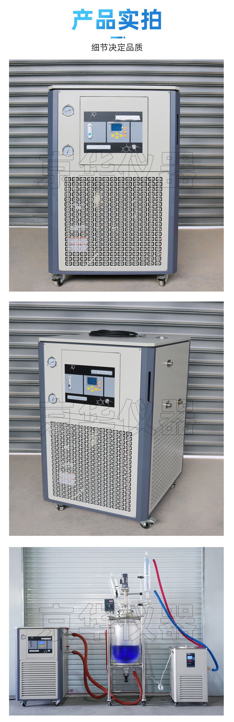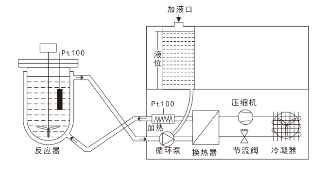 高低溫一體機又叫、高低溫循環泵、加熱制冷一體機、高低溫循環一體機,是專門給反應釜做升降溫用,循環系統的導熱介質是全密閉循環,循環系統帶有液體膨脹容器,膨脹容器和液體循環是獨立系統,膨脹容器并不參與液體循環,只是機械的連接。就算高溫運行的情況下,膨脹容器中的導熱介質都不會高于50度。